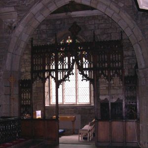 The screen between the chancel and the Lady Chapel was carved in 1897 at the Rectory by volunteers who included local landowners, miners and carpenters as well as the Rector. It was originally placed between the chancel and the nave.
